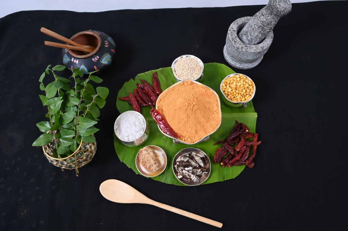 Gram Dal (Chana Dal), Urad Dal, Guntur Chilli, Byadagi Chilli, Jaggery, Salt, Tamarind, Asafoetida.