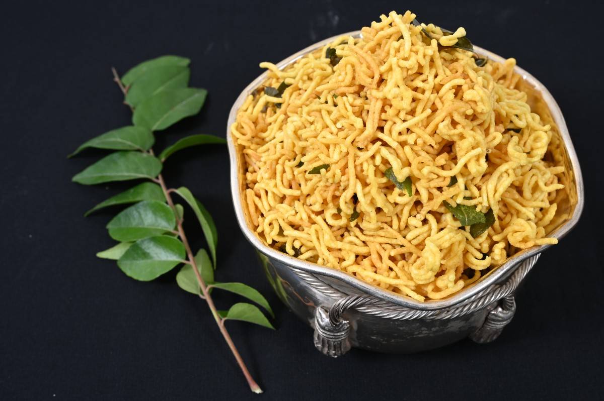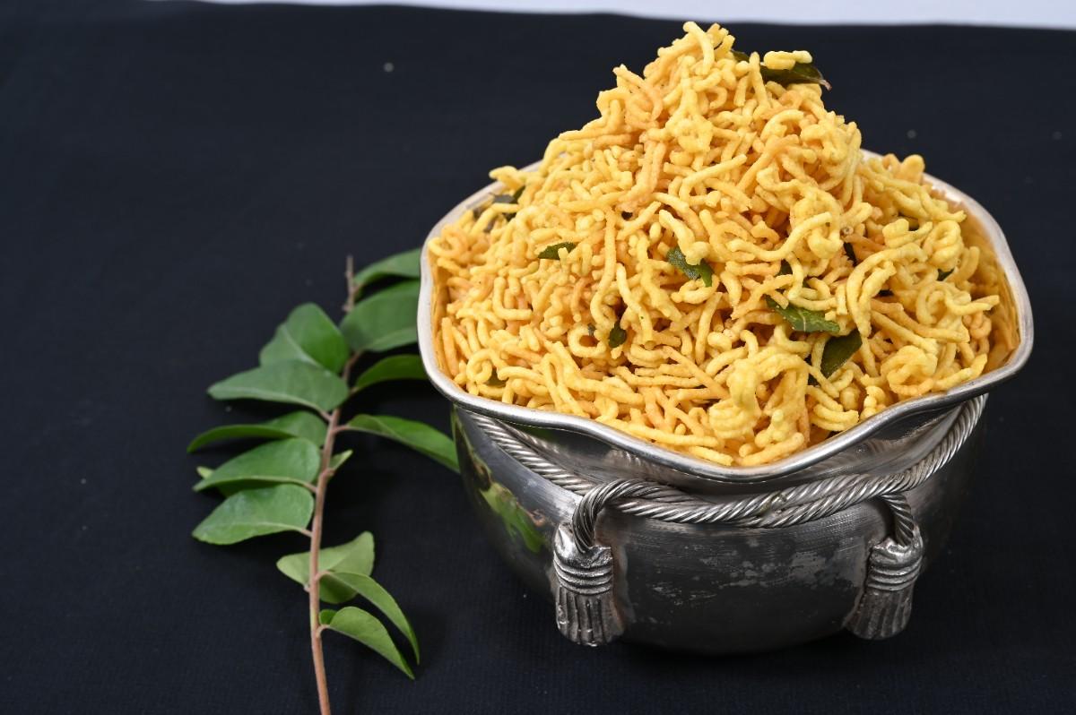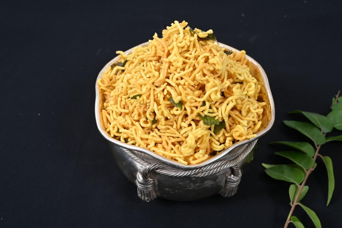 Gram Flour (Besan), Edible Vegetable Oil, Salt, Ajwain (Carom Seeds / Omam), Curry Leaves, Turmeric Powder.