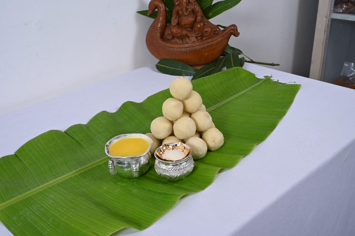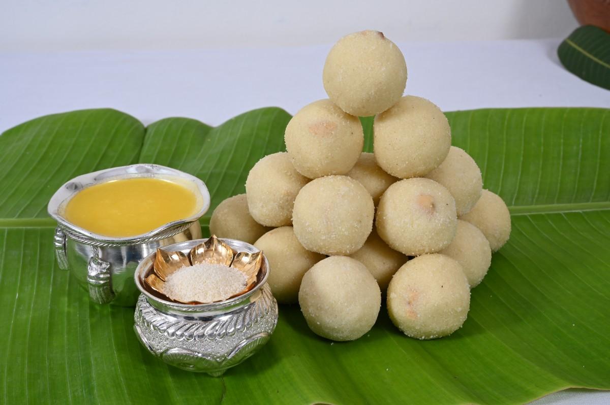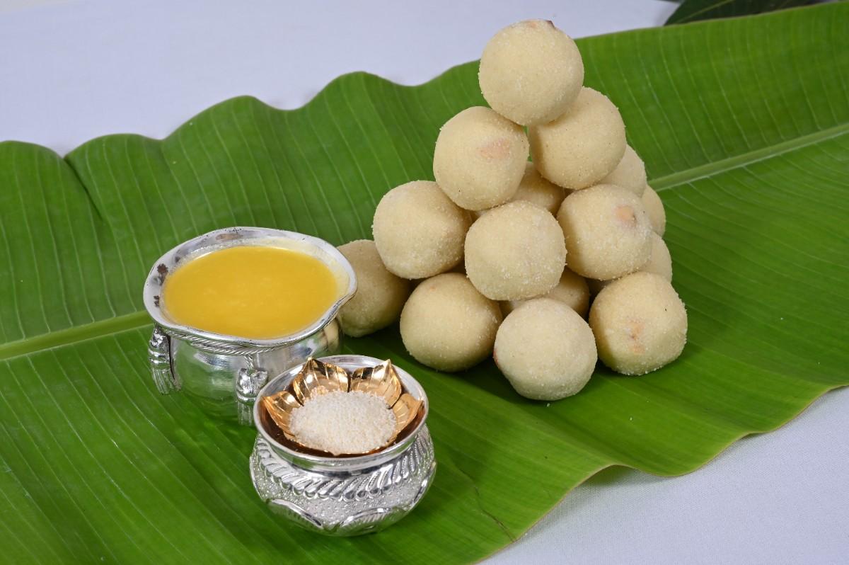 Semolina (Suji / Rava), Sugar, Ghee, Cashew Nuts, Raisins (Dry Grapes), Cardamom.
